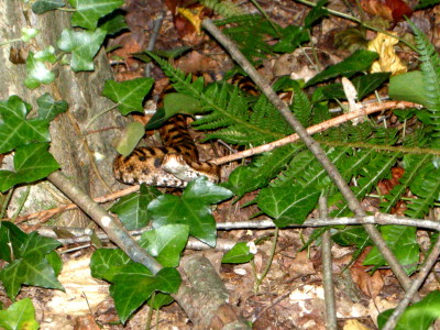 | Hij lag op het pad en bleef er stil liggen, bij het