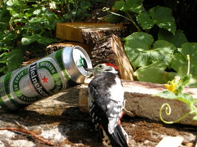 aankomt lopen. In de heg bij het terras gaan ze vaak heftig te keer. |